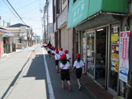 遠足を前に、道路を歩く時も、先週の交通安全学習を思い出して、安全に歩いてきました。