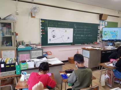 コンパスで長さを写し取ることができることを新たに知った子どもたちは、コンパスを活用して長さ比べをしました。