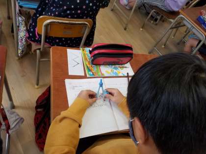 コンパスを使って円を描く学習を進めてきましたが、今日は新しい使い方を学びました。