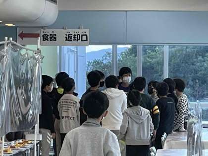 片づけと並行して、食事も時間帯が2つに分かれて進めています。