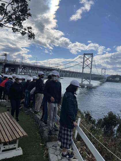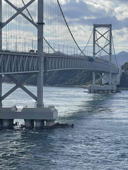 宿舎を出て、トイレ休憩を道の駅「うずしお」にとまりました。大鳴門橋とうず潮を見ました。