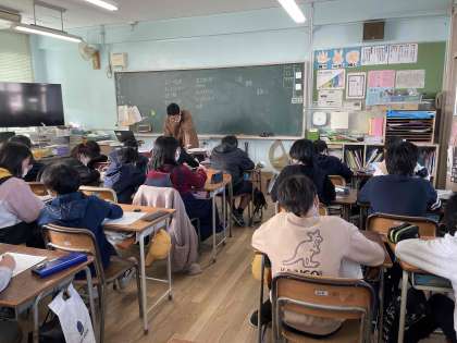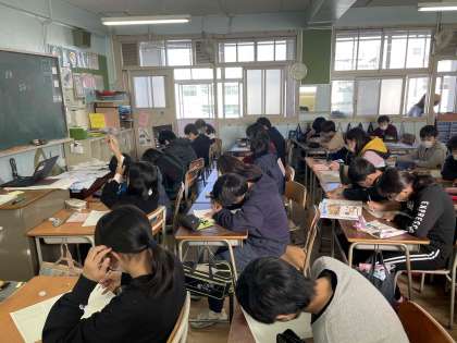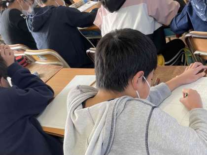 11月9日から11日までの6年生淡路島での自然体験教室の振り返りをしています。一つずつの出来事を思い出し、新聞でまとめる活動をしています。