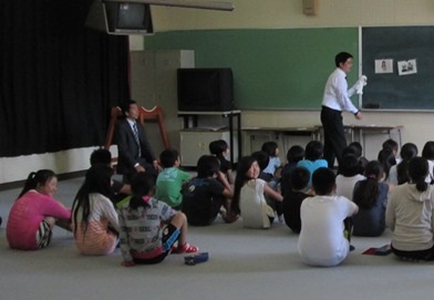 4年生は、総合的な学習の時間を使って英語活動を行いました。先生がマペット人形を使ってノリノリで、子どもたちも盛り上がって、とても楽しい学習をしました。“How are you?” “I'm fine.”