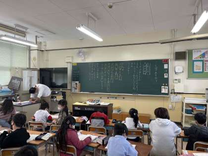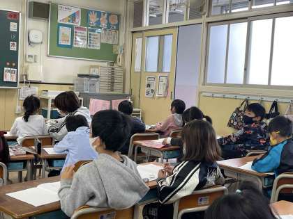 国語科の学習で、さかさ言葉やしゃれの言葉など、いろいろな言葉を使って楽しく学習する活動です。
