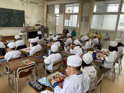 本校の給食は、工事のため下新庄小学校で作っていただいた給食を毎日運んでいただいてます。本日下新庄小学校が代休のため、お弁当持参で教室で食べています。