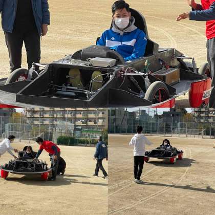 太陽光などエネルギーの話を聞いたあと、実際にレースにも出場しているプロトタイプのソーラーカーを見せてもらったり、小型のソーラーカーに実際に乗らせてもらったりして、太陽光のエネルギーの力強さを感じながら学習しました。