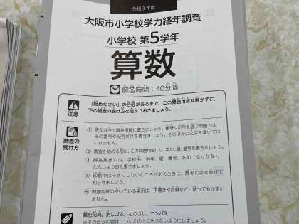 大阪市学力経年調査の二日目です。2時間目は算数です。