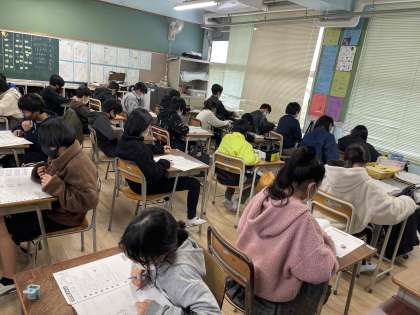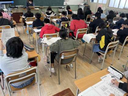4時間目は英語です。5年生6年生のみ実施です。音声による聞き取りの問題をやっています。