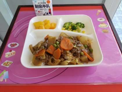 牛乳、冬野菜のカレーライス、ブロッコリーとコーンのサラダ