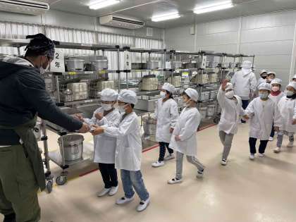 今日から給食の開始です。いつものように当番で助け合いながら用意しています。