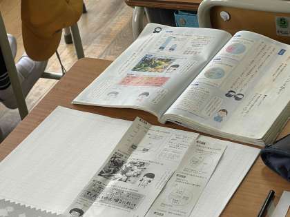 これまで、社会科では資料を読み取ってさまざまな様子や変化を比べたり傾向を調べたりする活動をしてきました。国語科でも、資料をみて考えたことを話し合う学習をしています。