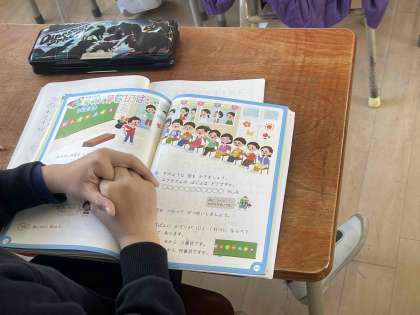 順番や列の数え方を学習しています。図をみて何番目にあたるのか、約束ごとに従って確かめています。