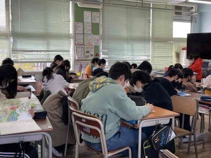 全校朝会の日ですが、今日は読書朝会に行っています。毎月1回は読書朝会がもてるようにしています。