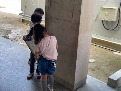 1年生と2年生がいっしょに、学校たんけんをしました。