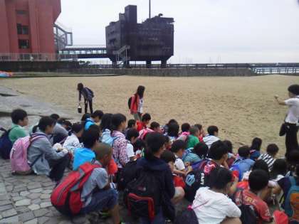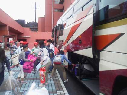 自然体験学習の目的地「大阪府立青少年海洋センター」にバスで出発した5年生。
