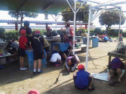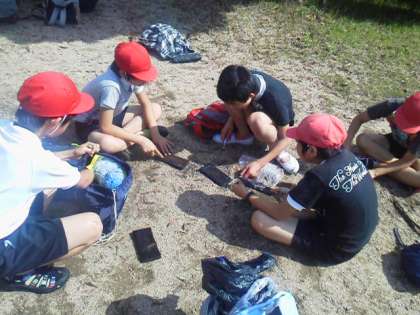 学校で準備した木を磨いていきます。手が黒くなってしまいますが、いい作品を作るために、ゴシゴシ磨きます。