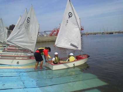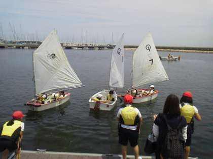 ヨットも組み立て、乗り方をレクチャーしてもらい、いよいよ海へ。
