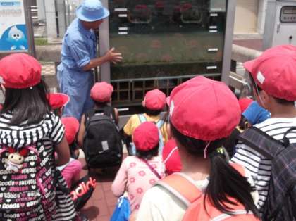 とても広い浄水場の敷地を見学。淀川の水がさまざまな処理をされていき、きれいな水になる工程を学びました。