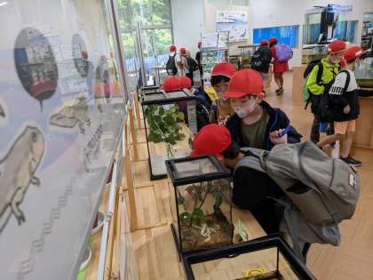 万博記念公園では、自然観察学習館へ行くグループ、ソラードへ行くグループに分かれて活動しています。