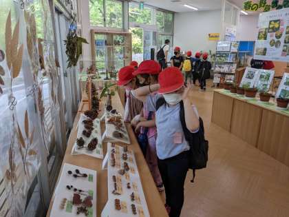 国語科や理科の学習を思い出して、「わあ、さなぎや。」「国語で勉強した、自然のかくし絵と同じや。」などお話しながら、楽しく活動しています。