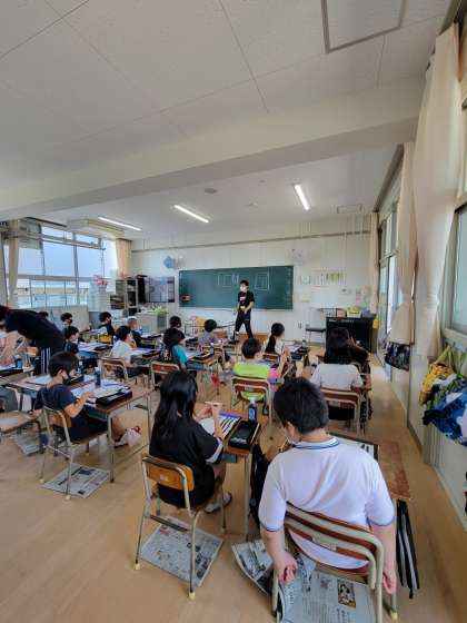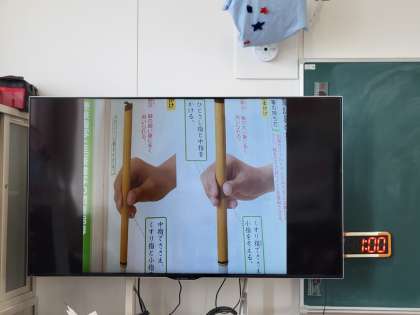背筋をピンと伸ばして、筆の持ち方から学び始めます。