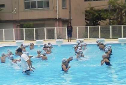 まだ、午前中は少し肌寒かったのですが、子どもたちの歓声がプールから響いてきました。