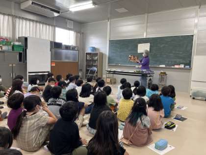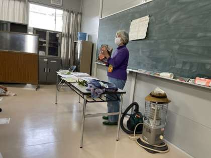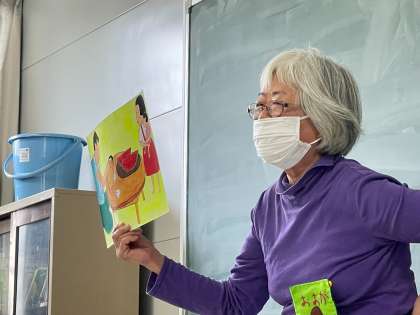 絵本「おたまさんのおかいさん」の読み聞かせをしていただき、そこから当時の地域の様子、生活や暮らしのことをお話ししていただきました。