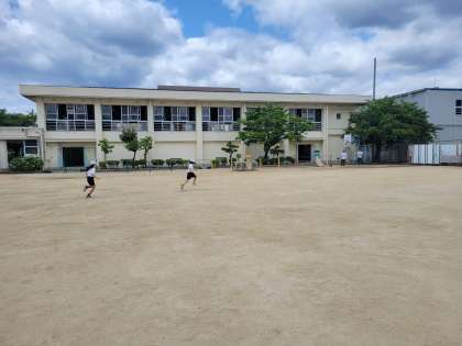 運動場で50M走の記録をはかりました。