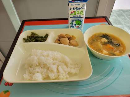 ごはん、牛乳、鶏肉のしょうゆバター焼き、とうふのみそ汁、