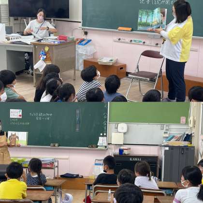 読み聞かせをしていただきました。今日は、2・4・6年生です。