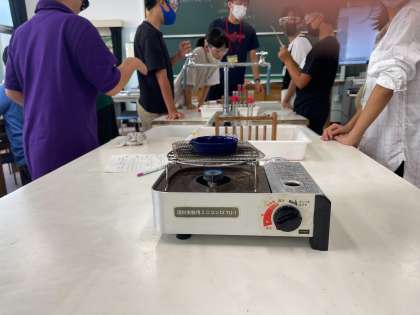 金属が溶けた液体を加熱してみると、、、水分が蒸発し、皿の上には何かが残ります。残ったものは、いったい何の物質なのでしょう。子どもたちは実験を通して調べています。
