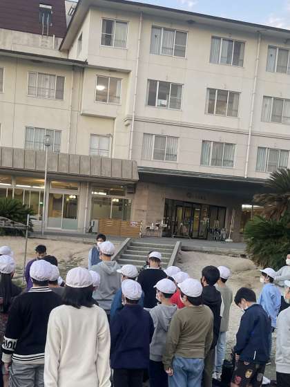 休暇村大久野島につきました。2日間お世話になります。多くのうさぎが、出迎えてくれています。