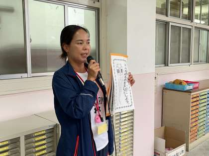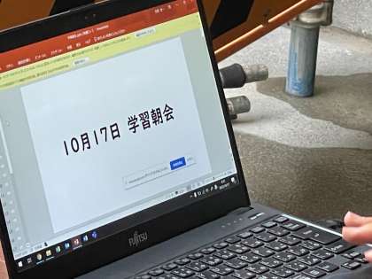オンラインによる学習朝会です。提示したことばが動物の場合と、それ以外のことばを区別して素早く反応するものです。生活目標等についても担当の先生から連絡がありました。