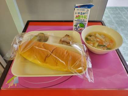 パン、牛乳、かつおのマリネ焼き(ノンエッグドレッシング)