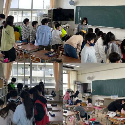 たてわり班活動です。たてわり遠足についての話し合いをしています。11月4日は、全校遠足です。リーダーを中心に、遠足での活動がスムーズにすすむようにしています。