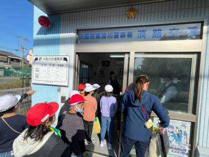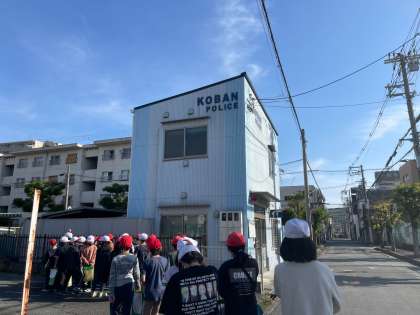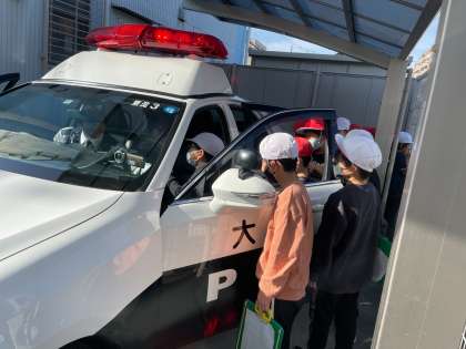 地域の淡路交番に行って、インタビューや見学をしました。パトカーのしくみもいろいろ知りました。