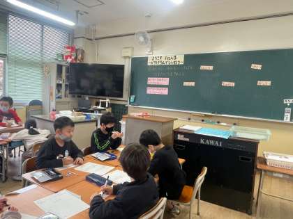 インタビューしたことを、グループでまとめています。