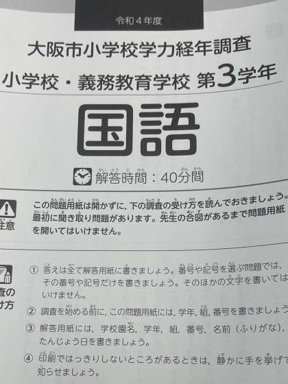 3年〜6年 大阪市学力経年調査 国語科 12月6日