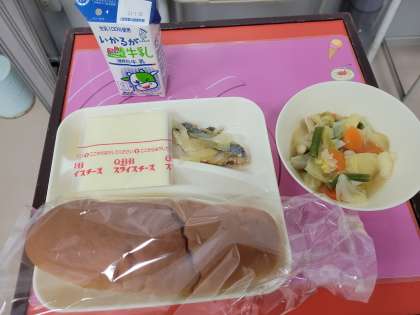 パン、牛乳、あじのレモンマリネ、てぼ豆のスープ煮、スライスチーズ