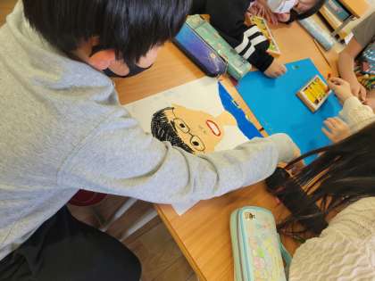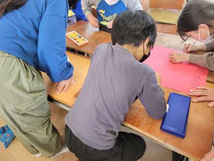 5年生は、メッセージカードの仕上げをします。祝う会の当日は、リーダーとしてがんばります。