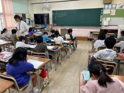 2年生も算数の学習を頑張っていました。1年生のころよりもノートに書く量が増えてきますが、しっかり頑張っています。よい姿勢で静かに、集中して学習できる2年生は立派です。