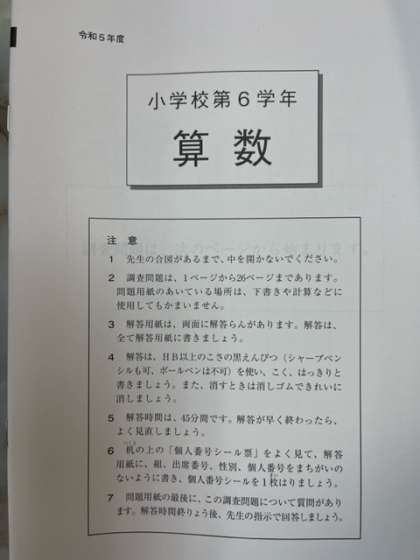 2時間目は、算数科のテストとなります。