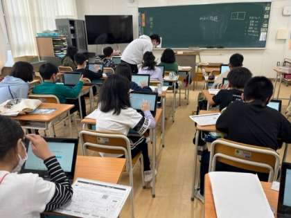 5・6年生は、すくすくウォッチの問題にチャレンジしています。アンケートにはタブレットで回答していきます。粘り強く取り組んでいました。