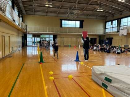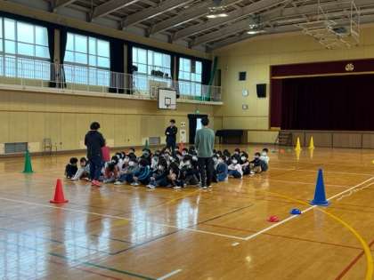 1・2・3年生は講堂で交通安全について学びました。遠足に向けて信号の渡り方や2列から1列に並び変える練習をしました。日々の登下校から、交通安全を意識して生活できるといいですね。ご家庭でもお子様とお話をしてみてください。
