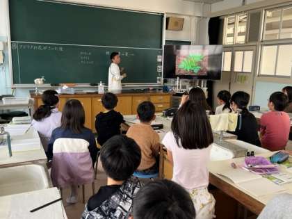 5年生は理科室で植物の学習をしました。種子の種類や特徴、どのような花が咲くのかを調べています。校内にも管理作業員さんが育ててくださった花々が見ごろをむかえています。明日の参観の際にぜひご覧ください。
