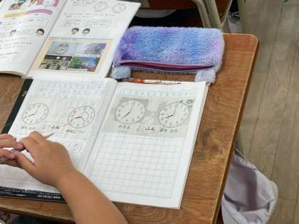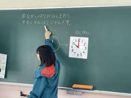 実際に時計盤を使って、じこくや時間の見方を学習しています。