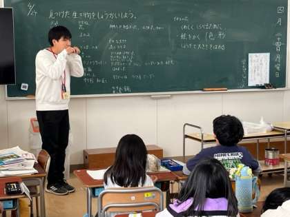 3年生は春の生き物を見つけようという学習をしています。今日は、どんな生き物がいるのか。どんなところにいるのか。観察へ行く計画を立てました。
