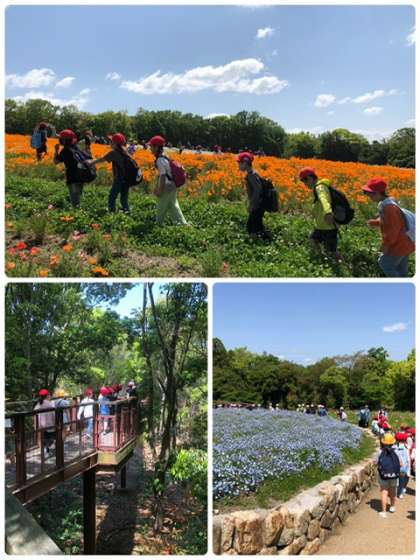 すごく気持ちいい天気です。今日の万博公園は市内から多くの小中学生が遠足に来ていました。子どもたちは広い園内で自然を観察したり、ソラードに登ったりと一日楽しく過ごしました。