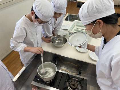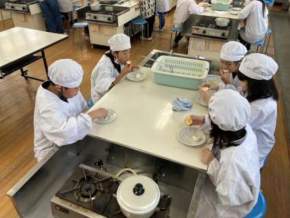 5年生はゆで卵を作る学習をしました。どれぐらいの時間ゆでるといいのか。どのように殻をむくのか話し合いながら作りました。美味しそうなゆで卵が完成!みんなで美味しくいただきました。