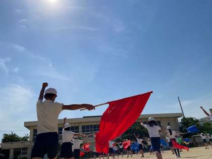 少しずつ旗の動きが揃い、リズムにのってきました。